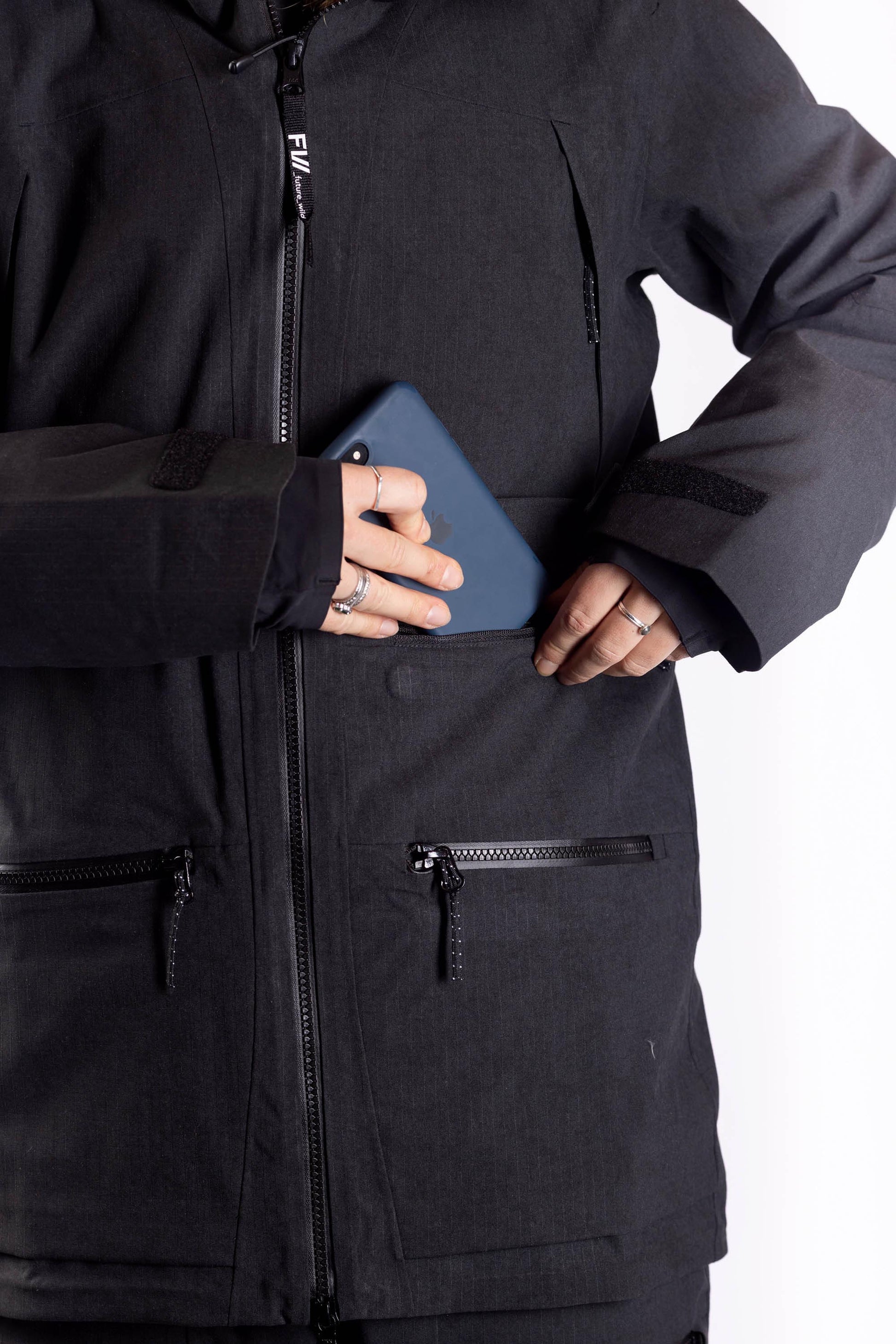 The W Manifest 2L Jacket features the beautifully bare necessities. The new waterproof and breathable shell fabric keeps you inspired and protected from the elements while a high-quality lining fabric provides coveted comfort. Additionally, extra-wide hand pockets stow all of a gal‘s essentials.